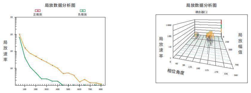 时产生的高频电压脉冲信号,通过专用的数字噪声分离技术,有效获取真正来自于电机内部绕组的局部放电;并以数据表格、2D或3D图谱等方式做视觉呈现,客观地描绘出定子绕组随时间变化的局部放电幅趋势以及相位解析,这些趋势图有助于及时发现数据变化并准确定义故障的严重程度。